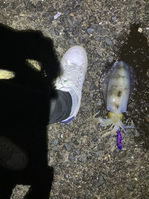 見に行ってみると、胴長20センチくらいの良型アオリイカ!